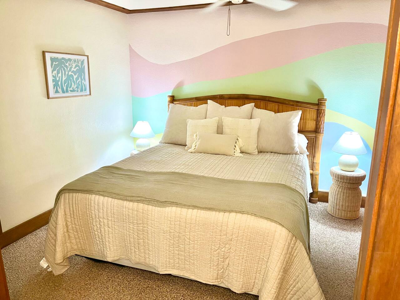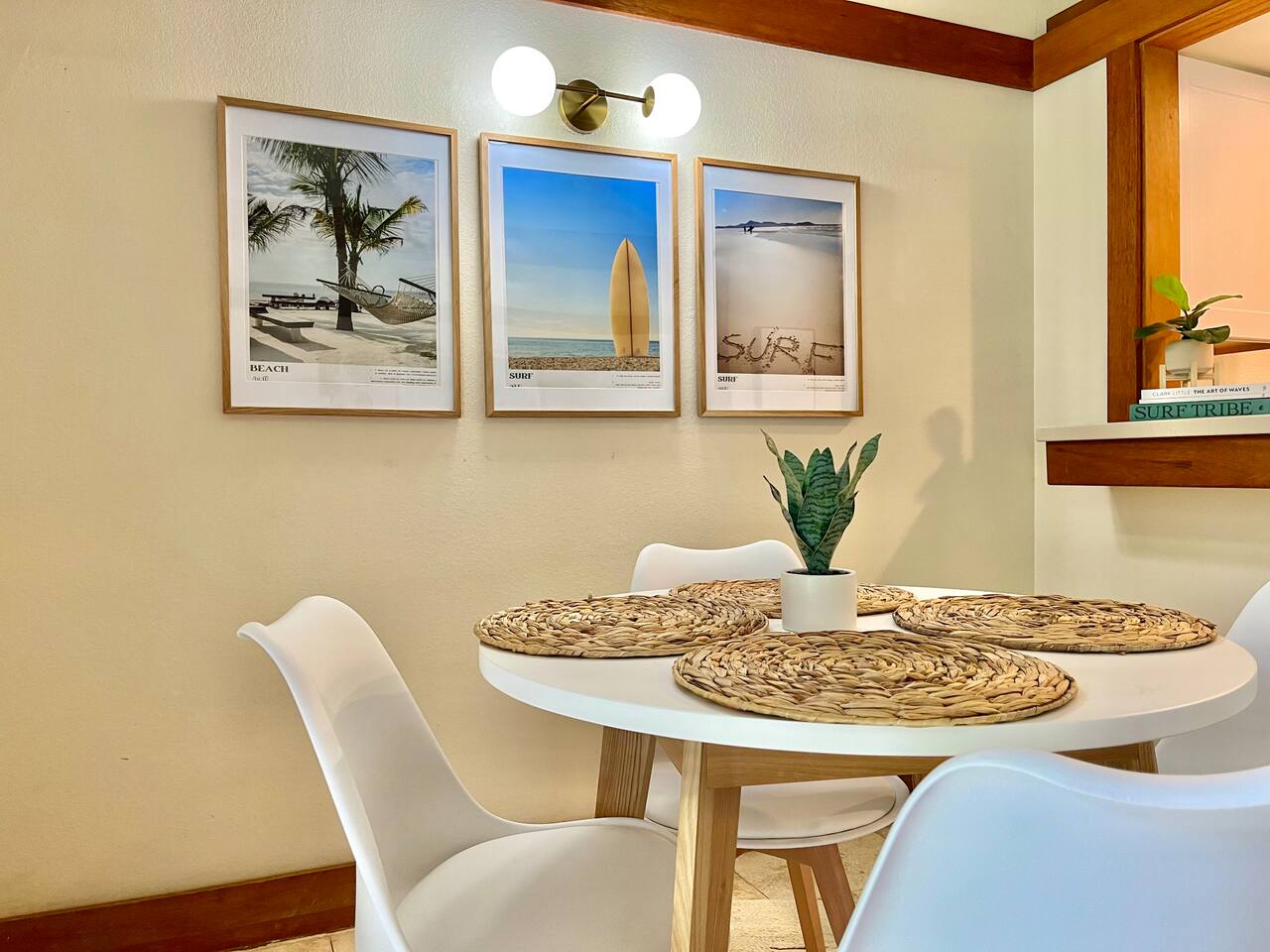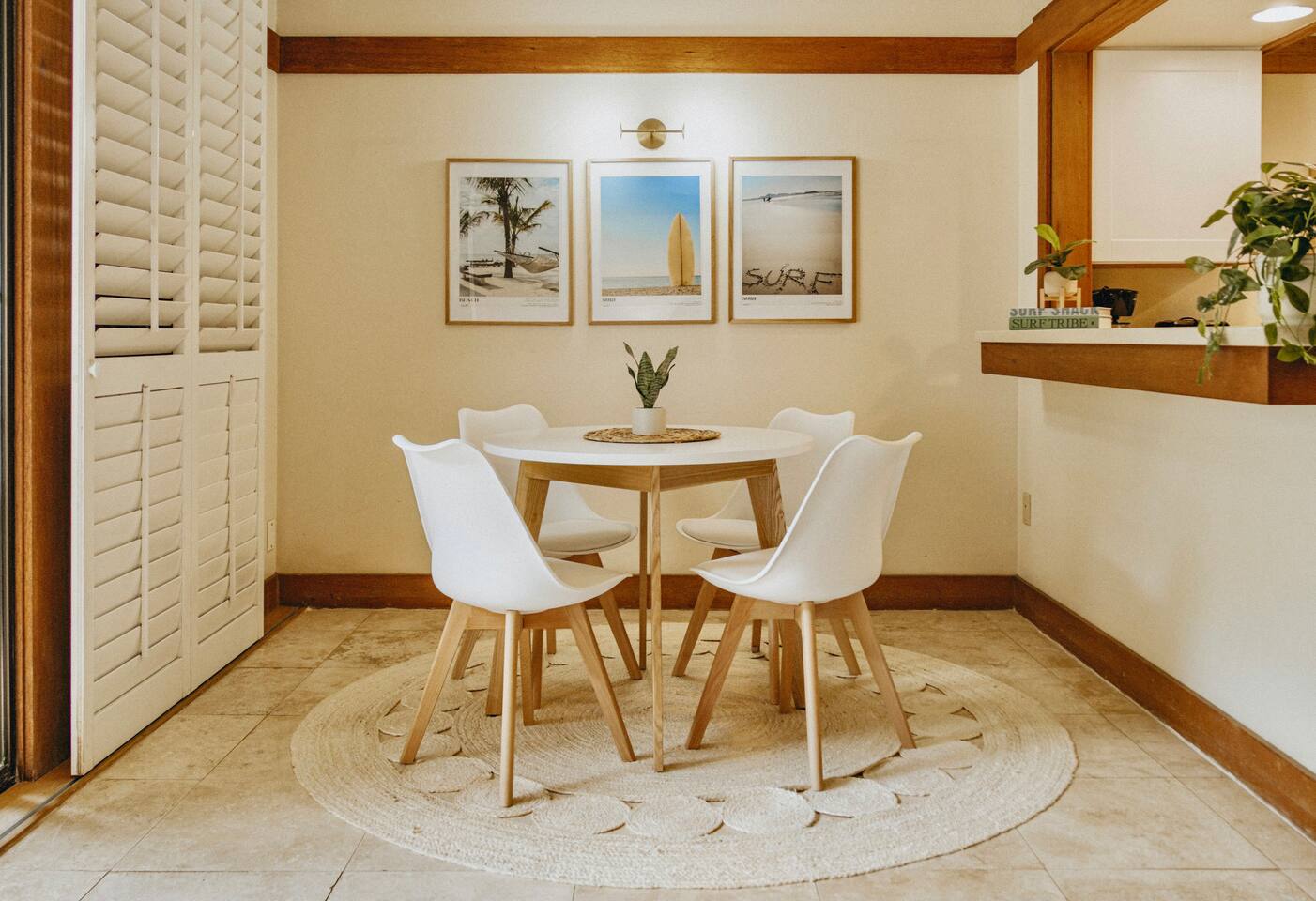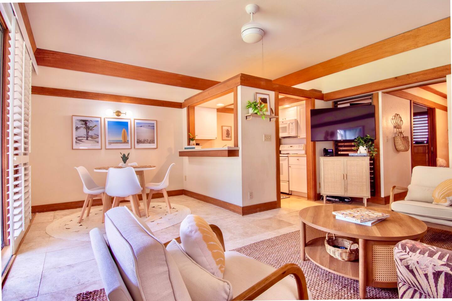 -Updated furniture and decor to match the Hawai’i vibe -Perfect place to enjoy your vacation alone or with others with amazing proximity to so many great beaches, restaurants and activities! -Free Access to the Poipu Beach Athletic Club across the street that includes a pool (with slide and keiki beach), gym and pickleball, and basketball courts! -Our condo has traditional Hawaiian louvered windows that open to screened exteriors, that let the fresh air flow through as this unit has no A/C. You might hear roosters or other outdoor sounds—it’s part of the island charm! We’ve got a sound machine ready if you need it. -Small children and families welcome with an included pack n play, and high chair along with some kids toys for them to enjoy! -The best beaches, Kiahuna and Poipu Beach, on the south side are anywhere from a 5ish minutes (Kiahuna) to 10ish minute (Poipu Beach) walk away from the condo depending on walking speed! -Goegeous outdoor lanai space that opens up to a nice grassy area for you enjoy! That part is backed by trees and there is a parking lot on the other side of it that you can see some through the trees!