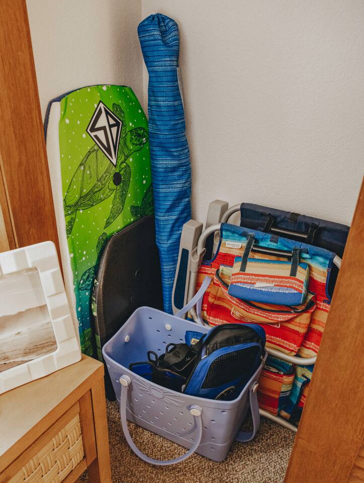 - Beach essentials Beach towels, umbrella, beach blanket, snorkeling gear