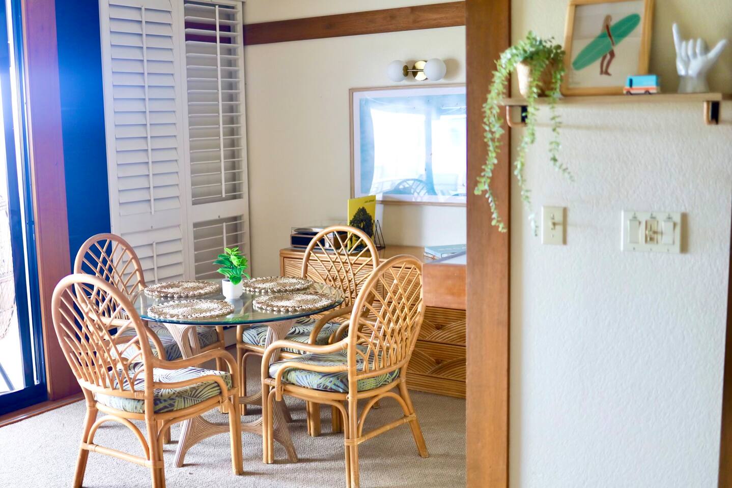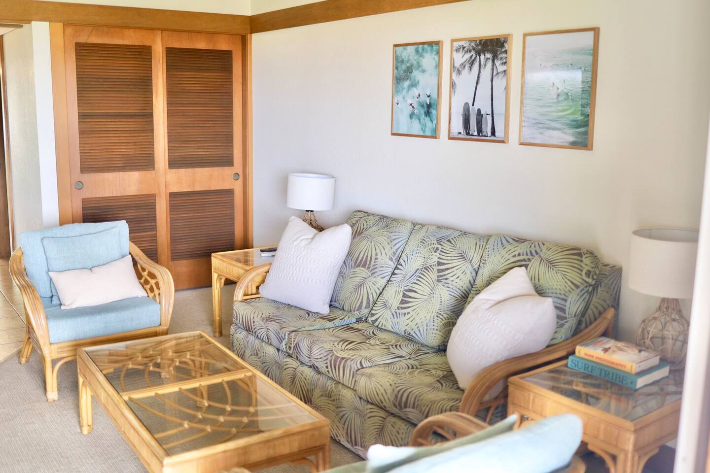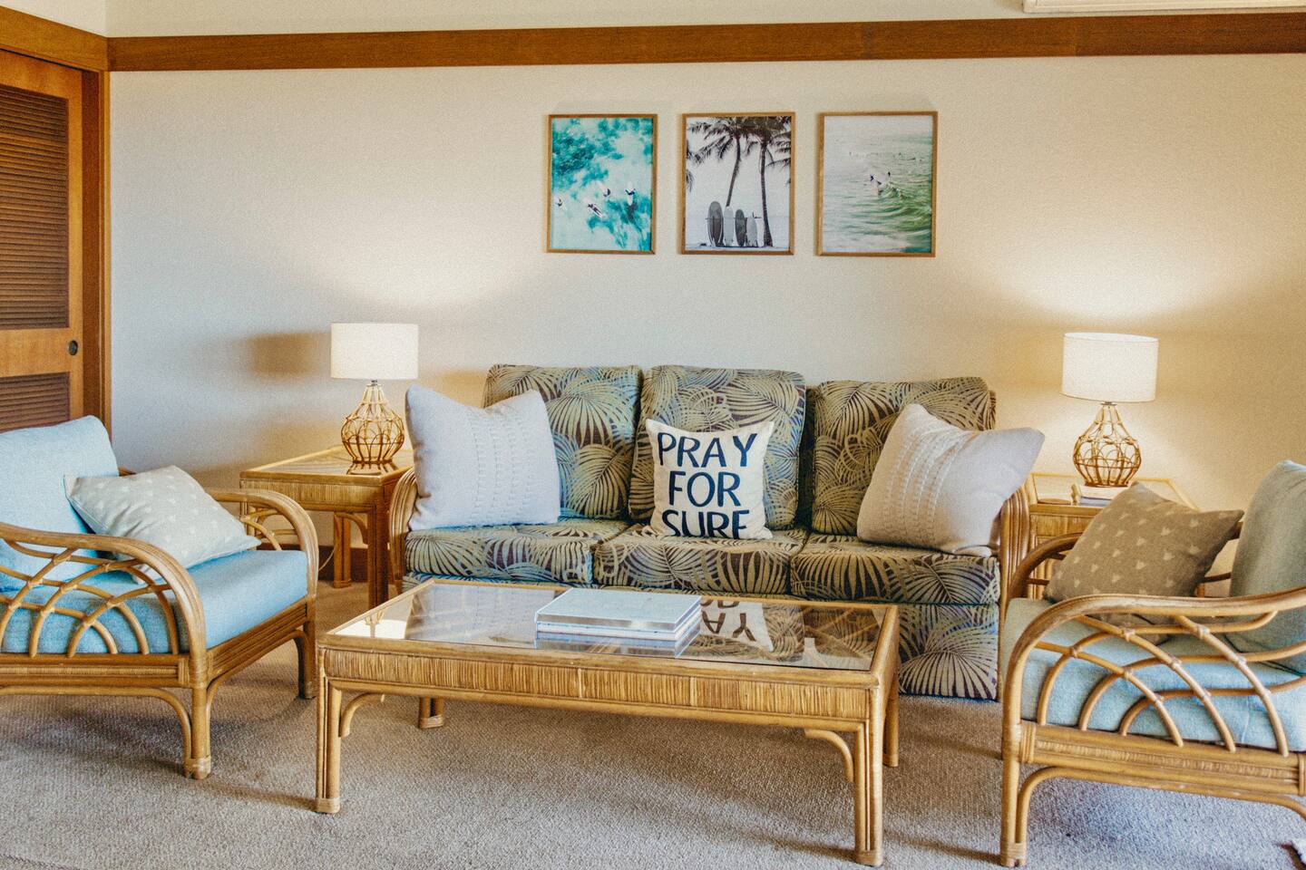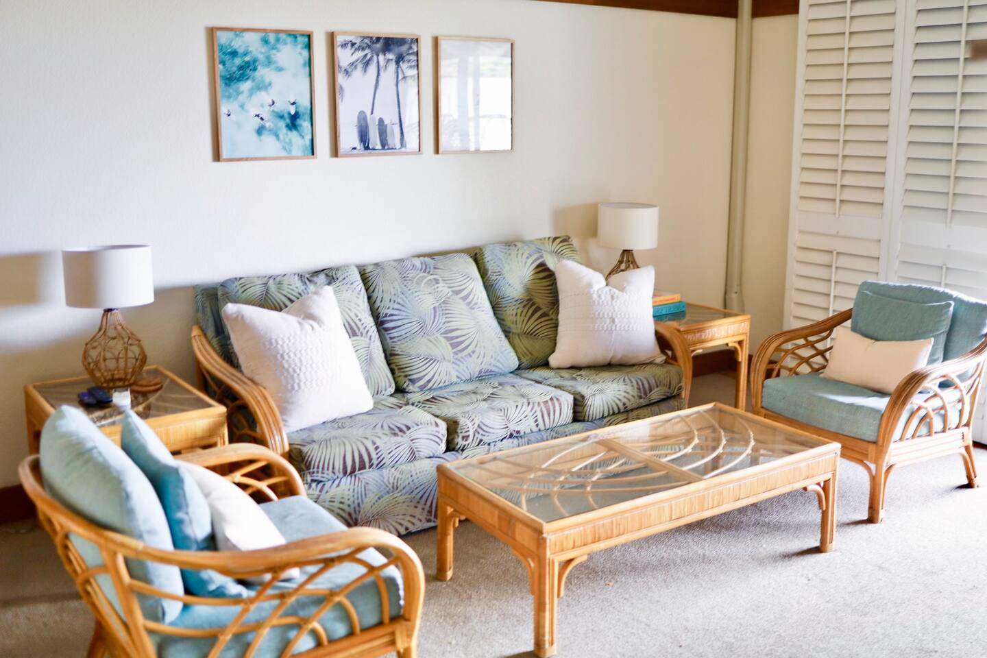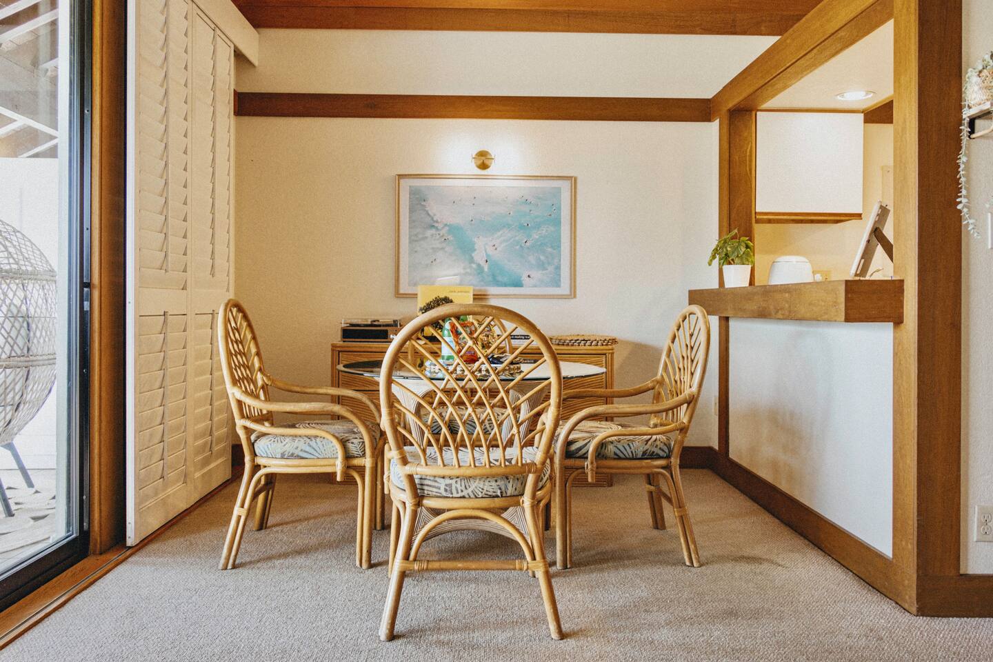 The condo gives you breath-taking, ocean views and wonderful cross ventilation with lots of windows letting the Hawaiian trade winds flow through. NO EXTRA CLEANING FEE at check in like other condos! Below is everything Condo #333 offers. * Condo #333 was recently up-graded with a surf/ocean theme. It will comfortably accommodate up to 5 guests. Small children friendly! * A/C split in the living room to help you stay cool as needed *Our condo has traditional Hawaiian louvered windows that open to screened exteriors, that let the fresh air flow through. You might hear roosters or other outdoor sounds—it’s part of the island charm! We’ve got a sound machine ready if you need it. * Enjoy a short 5 minute walk through the lush tropical grounds to the most beautiful crystal-blue, consistently sunny beaches in Kauai. * The two beaches (Kiahuna and Poipu) are super outstanding for snorkeling, surfing for all abilities, boogie boarding, lap swimming, swim aerobics, SUP boarding and the perfect baby beach for infants and children. You don't have to drive somewhere else to get these activities. * Just a short stroll to Starbucks, Kauai Juice Company, Farmer's Market, ice cream parlor, unique island shopping and award-winning restaurants. * FREE, High-Speed Wifi * Free parking in front of your condo and throughout resort complex. * Picnic area with BBQ grills in front of your condo. * Beach Hut (beach activities gear rental open from 9am - 4pm) * Laundry Facilities (7am - 9pm) just pay using a credit or debit card and bring your own soap! * Smoke-free property * Delight in an easy walk to the Poipu Beach Athletic Club where you will enjoy FREE use of all their amenities: • Resort-style pool with pool-side bar and sand bottom children's pool • Fitness Facility / cardio room /weight room (fitness classes cost extra) • 4 USTA Tennis Courts / 2 Pickleball Courts / 2 Basketball Half-courts • Shuffleboard / Ping Pong / Badminton / Lawn Games • On-site The Cabana Bar & Grill with poolside service * Keep in mind, there are no elevators at Kiahuna Plantation Resort.