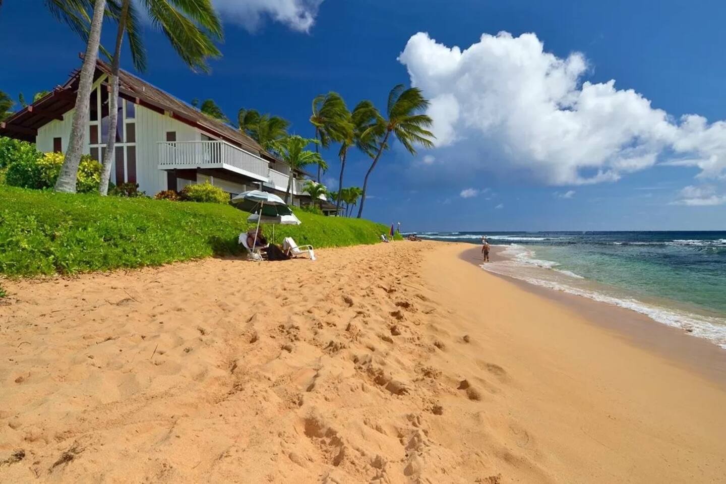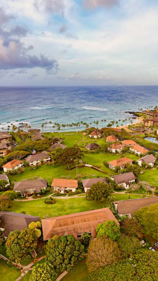 This amazing bright and open condo in is sure to make your vacation fantastic! The perfect place for couples and small families to enjoy the amazing island of Kauai. Enjoy coffee or dinner on the covered lanai with gorgeous ocean views. This centrally located condo is beachfront (5 minute walk)and within walking distance to the luxurious amenities offered the athletic club pool and gym, restaurants, coffee local shops. All costs, fees and taxes are included here in Airbnb!