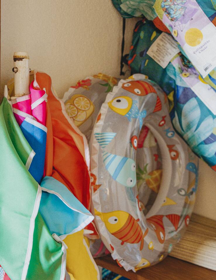- Beach essentials Beach towels, umbrella, beach blanket, snorkeling gear
