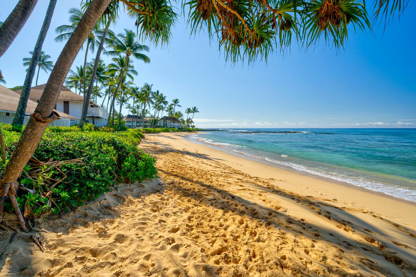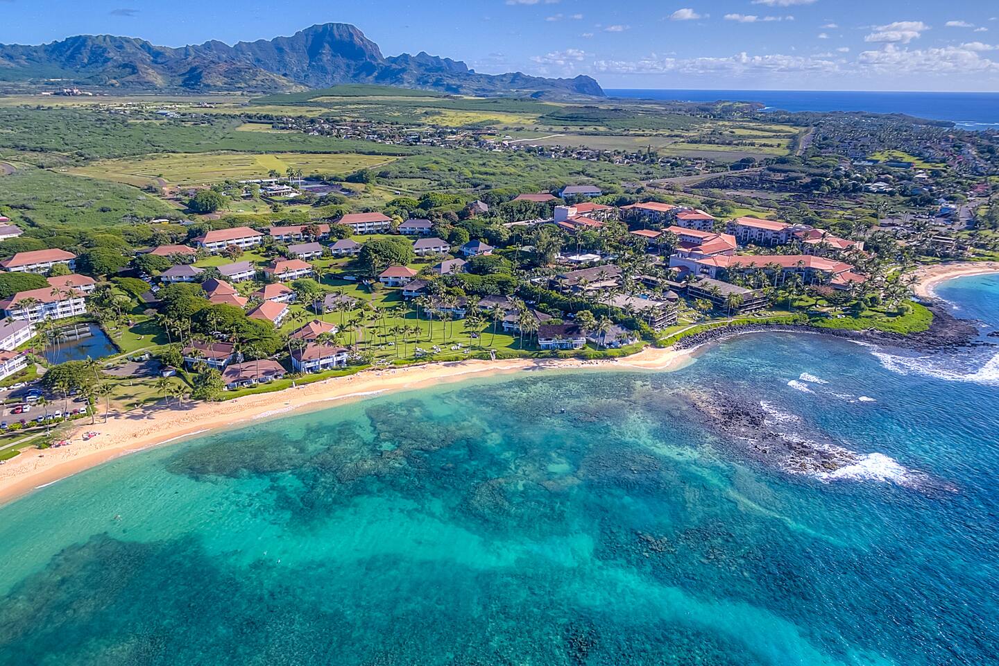 You are 3 min to the two best and consistently sunny beaches in Kauai. Your condo is also easy walking (3 min) to Starbucks, Little Fish Coffee, Resort Athletic Complex and Restaurant with pool with child-sand beach, exercise and tennis courts, etc., favorite restaurants and pizzeria, Gelato shop, gift and clothing shops. You are 10 min walk to an outdoor, upscale restaurant and unique retail mall. Being on the south shore you are close to nearly all the main island excursions situated nearby. Beaches are swimmable and offer all the usual activities in crystal clear water: swim, lap, snorkel, SUP board, surf a variety of areas from easy to professional.