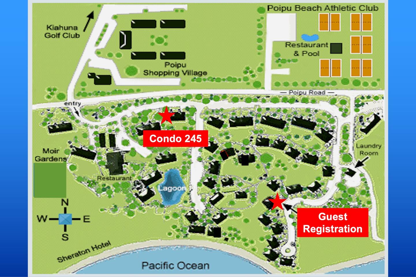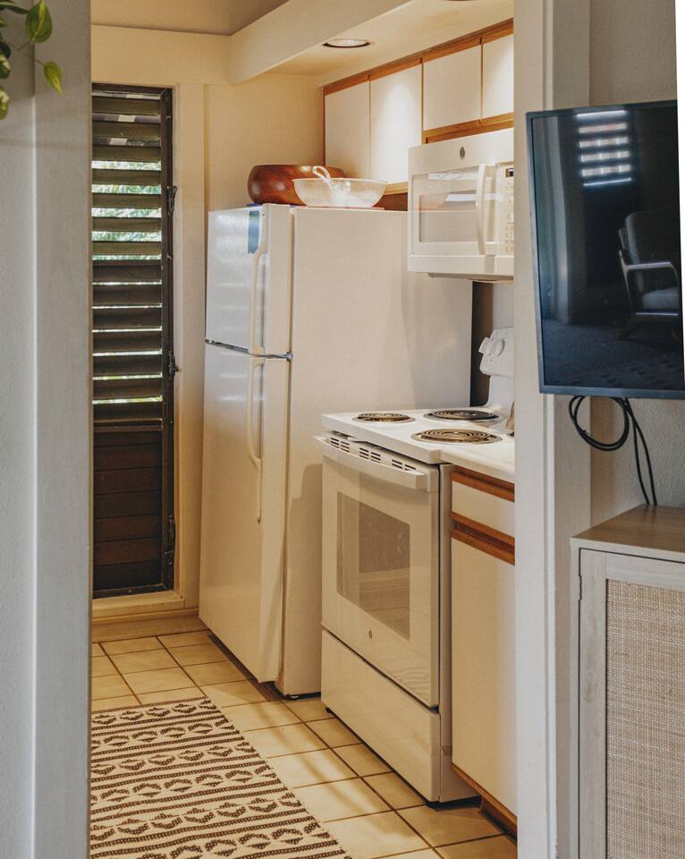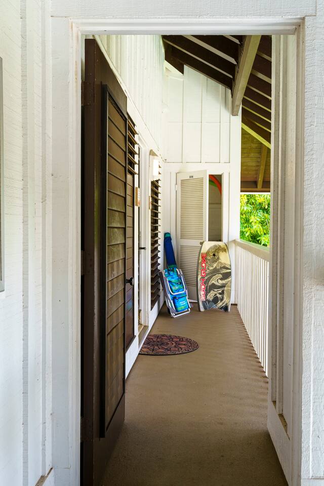 Top floor, corner condo gives you breath-taking, partial ocean views and wonderful cross ventilation with windows with louvers to allow the Hawaiian trade winds flow. We pride ourselves on being little ones friendly with a high-chair, kids toys and books along with family games for everyone to enjoy! When you check-in, you will go to right to the condo! We will send detailed directions. The condo is in building #37 condo #245. * Condo #245 has beautiful Tropical decor and furniture. It will comfortably accommodate up to 5 guests. * Our condo has traditional Hawaiian louvered windows that open to screened exteriors, that let the fresh air flow through. You might hear roosters or other outdoor sounds—it’s part of the island charm! You also may hear road noise as well in the unit at times. We’ve got a sound machine ready if you need it just in case. * Enjoy around a 5 minute walk through the lush tropical grounds to the most beautiful crystal-blue, consistently sunny beaches in Kauai. * The two beaches are super outstanding for snorkeling, surfing for all abilities, boogie boarding, lap swimming, swim aerobics, SUP boarding and the perfect baby beach for infants and children. You don't have to drive somewhere else to get these activities. * Just a short stroll to Starbucks, Kauai Juice Company, Farmer's Market, ice cream parlor, unique island shopping and award-winning restaurants. * inside the living room closet there are beach supplies of beach chairs, umbrella, and boogie boards, anything else you may need can be rented at the beach hut on property! *Flat screen SMART TV wall mounted in living area. * FREE, Wifi * Free parking in front of your condo and throughout resort complex. * Picnic area with BBQ grills in front of your condo. * Beach Hut (beach activities gear rental open from 9am - 4pm) * Laundry Facilities (7am - 9pm) * Smoke-free property * Delight in an easy walk to the Poipu Beach Athletic Club where you will enjoy FREE use of all their amenities: • Resort-style pool with pool-side bar and sand bottom children's pool • Fitness Facility / cardio room /weight room (fitness classes cost extra) • 4 USTA Tennis Courts / 2 Pickleball Courts / 2 Basketball Half-courts • Shuffleboard / Ping Pong / Badminton / Lawn Games • On-site The Cabana Bar & Grill with poolside service * Rest is the Basis of Activity! We want you to rest well so you can fully enjoy your vacation. That is why we gave extra attention to making the king size bed as comfortable and heavenly as possible. A premium memory foam delivers pressure relief for a deeper, more rejuvenating sleep. * The bright and open kitchen is fully equipped. Everything the "Cook" would want to create your favorite meals. Even a Ninja blender to blend your smoothies, knife set , coffee maker, cutting boards, etc. * Keep in mind, there are no elevators at Kiahuna Plantation Resort. Condo #245 is on the second floor so there are several stairs.